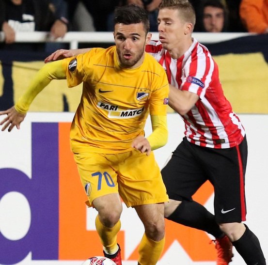 La segunda estadía fuera de su país es precisamente la más reciente, en el APOEL, al que llegó en el mercado estival de la 2015/16. Le dio tiempo a participar en diecisiete partidos y anotar cinco tantos, uno de ellos, el que certificó el título liguero. Satisfecho con su rendimiento, el equipo chipriota optó por renovar la cesión, que le llevó a jugar competición europea el año pasado.