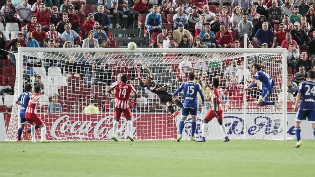 Desde la banda derecha Provencio pone un centro al área y Álex García salta sobre Ximo batiendo de cabeza a Casto para enmudecer el estadio de los Juegos Mediterráneos. Un escenario que pudo ser peor a los cinco minutos con una ocasión para Néstor, quien estrellaba el tiro en la cara del guardameta rojiblanco. Si los jabatos perdonaban, no así los andaluces, que de nuevo a balón parado volvían a poner tierra de por medio en el 77′.