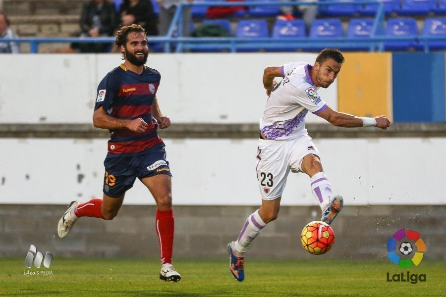 Menos fortuna tendría el canario pasada la media hora de encuentro al derribar al exnumantino Juanjo en su camino a la portería y penalizar al defensa con el punto fatídico con amarilla incluida. Pitu lanzó, y aunque adivinó Biel Ribas, no pudó desviar el esférico introduciéndose en la red visitante. Con el 2-0 se llegaba a la segunda mitad, en la que Arrasate no tardaba en meter en el campo a Álex Alegría por Pablo Valcarce. De nuevo surtió efecto la entrada del extremeño y junto con Óscar Díaz comenzaban a mejorar el frente de ataque rojillo.