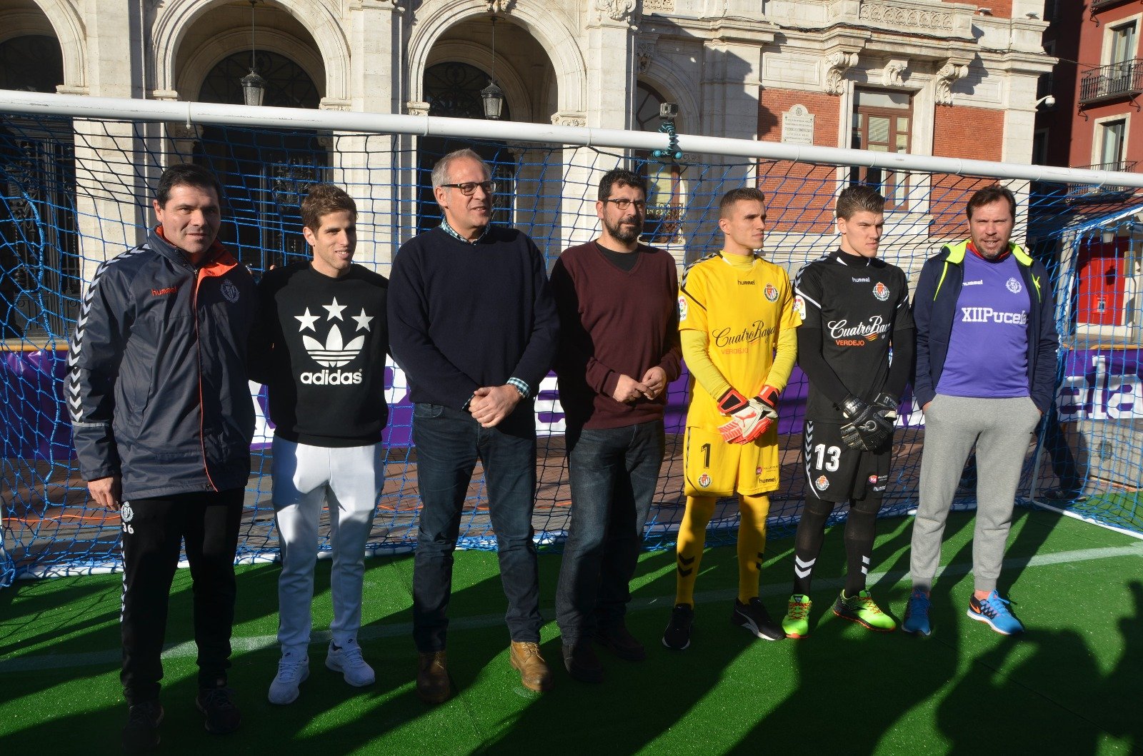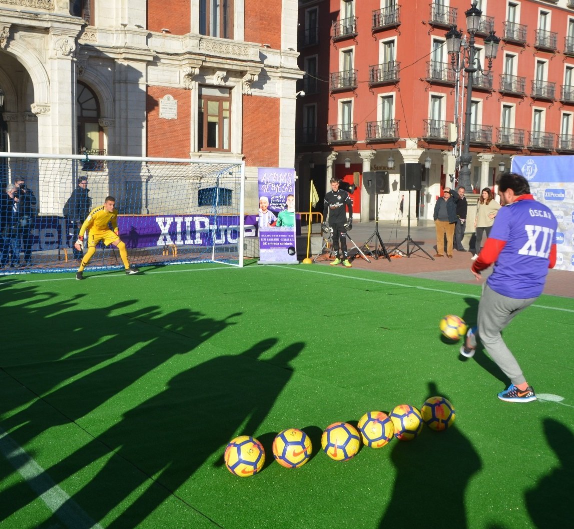 El solecillo calentaba, al menos lo suficiente como para considerar la tarde apacible, más para tratarse de mediados de enero. La temperatura era buena, el ambiente siempre parece mejor si la música ameniza una espera y marcar un gol a los porteros del Real Valladolid siempre tiene su aliciente, aunque uno sea precisamente hincha blanquivioleta. Sin embargo, cualquiera de estas motivaciones es muy poca en comparación con el fin último del evento desarrollado este miércoles en la Plaza Mayor.