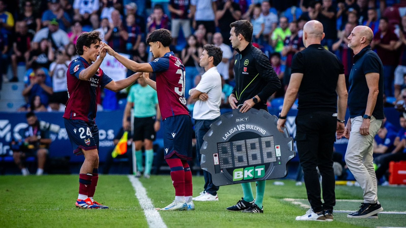 Ese peaje de ser parte tan prematura del profesionalismo -seguía teniendo 16 años cuando comenzó la pasada campaña- le llevó a solamente jugar unos minutos (el añadido) en un partido de liga y solo una mitad de otro de Copa del Rey. En el vestuario del Levante se convirtió en el hermano pequeño o en el sobrino de todos; de gente como Vicente Iborra, que le llevaba a entrenar, y que acumula una larga trayectoria. También, le sirvió para dar un paso al frente en el plano físico, puesto que en el fútbol actual no queda otra que hacerlo y era una culebrilla hasta ese momento.