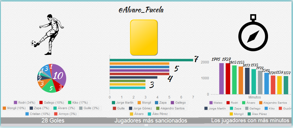 Los jugadores más destacados del conjunto local son Cubero, centrocampista que controla los tiempos de su equipo, Joshua, su jugador más adelantado, que anotó dos goles frente al Simancas y, especialmente, Marcos, segundo máximo goleador del campeonato con once goles, un extremo muy incisivo que sobresale por su desborde y su llegada desde segunda línea.