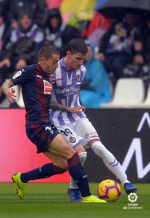 Quizá fuera el tiempo atmosférico, a lo mejor la incompatiblidad de ambos equipos sobre el terreno de juego, chance que os jugadores no tuvieron el día. La cuestión es que la primera parte ya vino a marcar lo que iba a resultar del total. Toni hacía bailar en su banda a Rubén Peña mientras que Míchel y Alcaraz se peleaban por el dominio del centro del campo con Pape Diop y Escalante, con un dominio alterno. El Eibar no era capaz de imponer su juego de presión y el Pucela no se sentía cómodo sobre el verde.