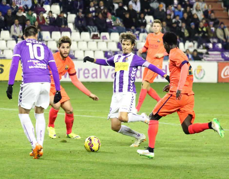 A pesar de que en los primeros quince minutos el FC Barcelona supo encontrar a Adama Traoré a las espaldas de Peña, el Valladolid tomó el control numérico y posicional en la zona ancha y en la fase de finalización, fabricando numerosas ocasiones de gol, siete de ellas concluidas en goles que se resistían. Jeffren, inspirado en banda derecha, implantó un enlace con Óscar a la postre dañino para los culés, desbordados en las transiciones defensivas e inoperantes para dar respuesta a los espacios entre la segunda línea de presión y su defensa de cuatro –problemas que no suturaron en ningún momento del partido-.
