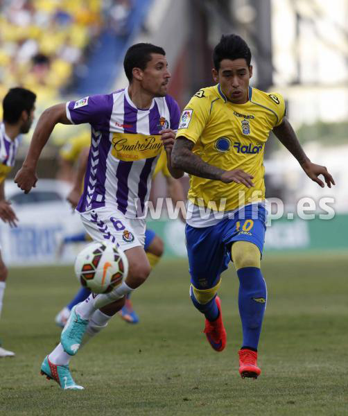 El ‘Chino’ inquietó en todo momento a los dos centrales del Valladolid, se pegó a ellos para alejarse después y abrir o explotar los espacios en la frontal. Junto a Roque Mesa, muy dinámico en la línea de mediapuntas, amenazó con marcar pronto para la UD. El Valladolid, de nuevo, intentaba achicar los riesgos y lanzaba envíos altos para que Roger los amortiguara con la cabeza y se produjera una oleada ofensiva al contragolpe.