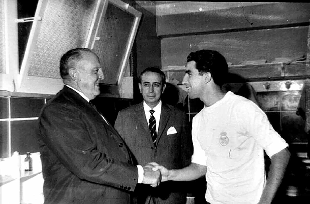 Es en esa época en la que el Real Madrid empezó a preguntar por ese delantero de Pucela. Hasta ese verano de 1964, el club merengue no llamó firmemente a su puerta, pero él no pudo negarse. Fueron dos años como madridista (aunque en el segundo se fue cedido), en los que apenas pudo jugar un partido… y marcar un gol. Compartió vestuario con leyendas como Di Stéfano, Gento o Amancio, pero acabó cedido en un Sabadell donde le fue peor de lo esperado.Morollón Bernabeu