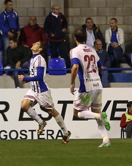 Álex García celebra un gol
